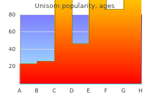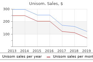 Patients with intraocular inflammations insomnia ypsilanti buy 25mg unisom with visa, especially in herpetic keratouveitis sleep aid in pregnancy order unisom on line, may have increased intraocular pressure as a result of intraocular inflamma- tion sleep aid 263 buy unisom with american express. Therefore, in the present patient, the topical steroids should be increased and not decreased. The frequency of prednisolone acetate administration was increased to every 3 hours while awake, and timolol, 2 times/day, was added. One week later intraocular pressure is normal, and intraocular inflammation has subsided. The patient returns 2 days later with recurrence of pain and photophobia and return of intraocular inflammation. A useful rule is to decrease steroids by no more than half of the previous dose, especially in herpetic keratouveitis, in which rebound inflammation is frequent. Sometimes patients abruptly stop the eyedrops when they feel better and then suffer rebound inflammation. The resulting changes in the ocular surface can cause ocular discomfort, scarring, and, in severe cases, loss of vision and perforation. The outer layer is a thin lipid layer produced by the meibomian glands, which open along the upper and lower lid margins. The middle layer, the thickest, is composed of aqueous produced from the main and accessory lacrimal glands. Also, an abnormal lid contour as in ectropion or lid tumor, or poor blinking found in Bell’s palsy. It supplies oxygen from the atmosphere to the corneal epithelium, washes away debris, and has antibacterial properties due to IgA, lysozyme, and lactoferrin present within it. It covers the villus surface of the corneal epithelium, converting it from a hydrophobic surface to a hydrophilic one thus allowing the aqueous layer to lubricate the cornea. Patients with cicatricial ocular pemphigoid, Stevens-Johnson syndrome, chemical burns (especially alkali), and graft-versus-host disease in bone marrow transplantation may have dry eye. Patients with other conjunctival disorders that accompany conditions such as aniridia may also have dry eyes. A normal blink reflex, normal lid anatomy and contour, and a normal corneal epithelium. Burning, irritation, foreign body sensation, light sensitivity, and blurred vision. Usually, the symptoms are worse in the afternoon and evening and better on awakening. A dry or dusty environment may cause more difficulties in patients with dry eye then others. Symptoms are worse in low humidity environments, such as those with central air and in an airplane, during prolonged reading and driving with a decreased blink rate due to increased concentration, and windy conditions. In the early stages, ocular symptoms may be more impressive than what is found on the examination. Signs of dry eye include a decreased tear meniscus, debris in the tear film, conjunctival injection, and superficial punctate keratitis and conjunctivitis. Abnormal fluorescein or rose bengal staining of the corneal and conjunctival epithelium in the exposed interpalpebral fissure (at 3 and 9 o’clock) of the lower third of the cornea is often present. In more severe disease, filamentary keratitis can develop as well as corneal scarring. Rheumatoid arthritis is the most common, but systemic lupus erythematosus, Wegener’s granulomatosis, scleroderma, systemic sclerosis, and primary biliary cirrhosis may also be associated. Women are more likely to develop this than men, probably in relation to changes in hormone levels. It can occur in patients in their 20s and 30s, but may be overlooked unless patients are specifically questioned about symptoms. Rose bengal stains mucin and epithelial cells that are dead or devitalized, but still in place.