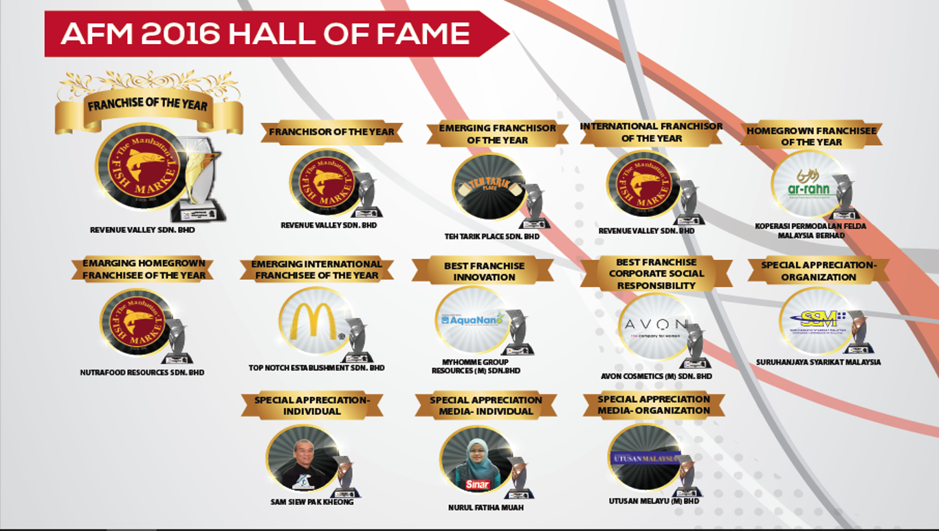 - This award is open for homegrown franchise system registered as a FRANCHISOR under Section 6, Franchise Act 1998 (Amendment 2012). Franchise business has been in operation for at least 3 years, with audited accounts for year 2014, 2015 and 2016. This award offered especially for homegrown franchisor that shows tremendous performance on in expanding their business internationally (1. Asia Pacific 2. Africa & Middle East 3. Europe) .