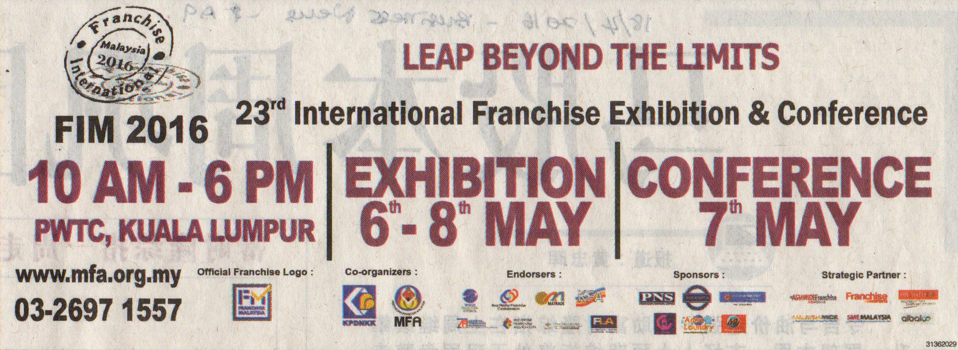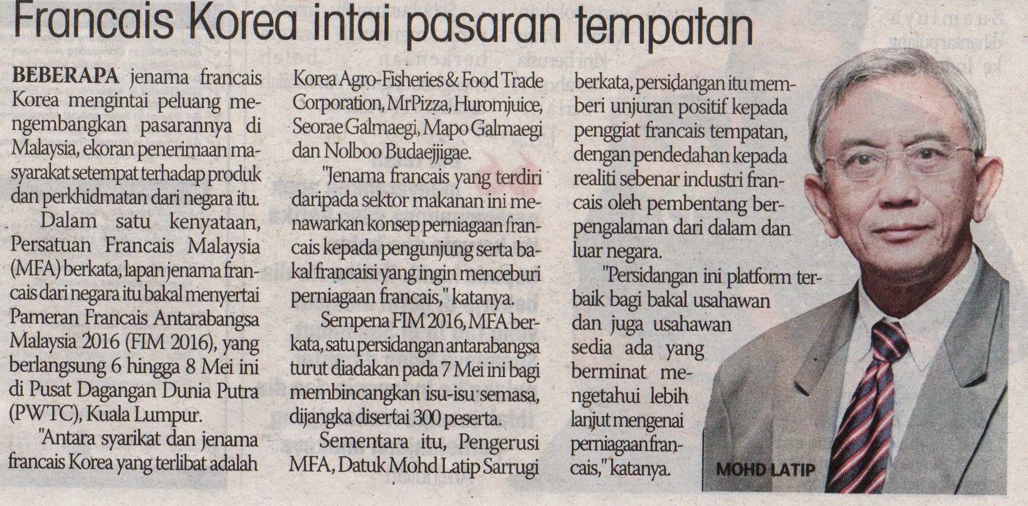 Franchise International Malaysia (FIM2016) PapercuttingBy adminMay 10, 2016NANYANG SIANGPAU – 25 APRIL 2016