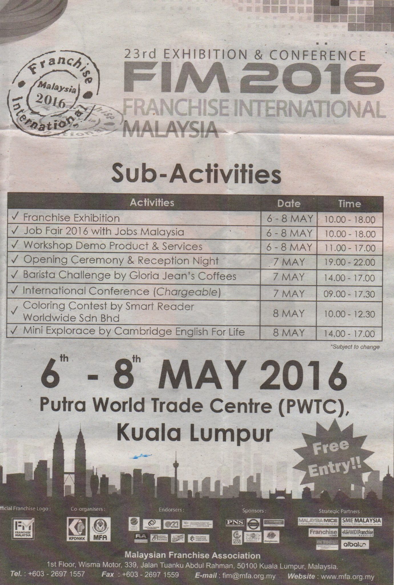 Bakal Usahawan Dapat Banyak Maklumat Dalam FIM2016 PapercuttingBy adminMay 10, 2016UTUSAN MALAYSIA – 9 MAY 2016