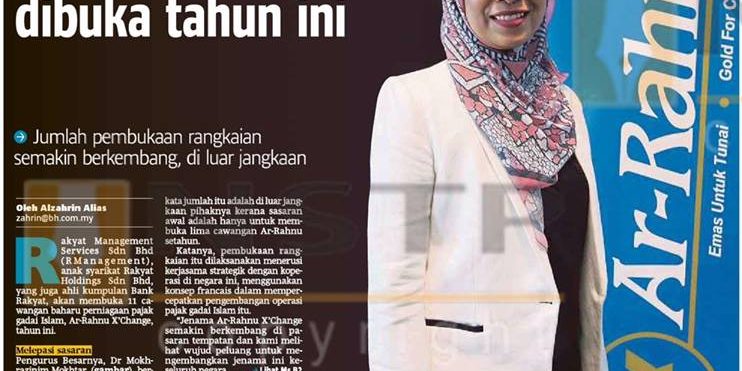 “Rakyat Management Services Sdn. Bhd. akan membuka 11 cawangan baharu perniagaan pajak gadai Islam, Ar-Rahnu X’change tahun ini.”