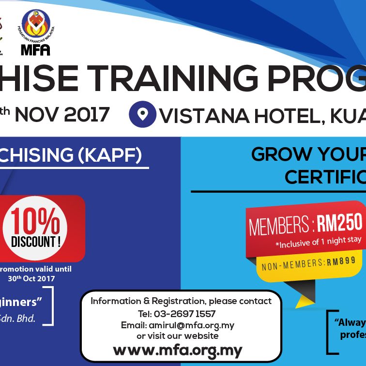 Kindly be informed that we’ll be closed on the 26th till 28th of June (Monday – Wednesday) for Raya. Operations will resume as usual on 29th of June Thursday. Selamat Hari Raya Aidilfitri from all of us at Malaysian Franchise Association (MFA)!