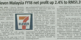 Artikel Penuh: https://www.thesundaily.my/business/7-eleven-malaysia-s-fy18-net-profit-rises-2-4-to-rm51-31-million-JD599579