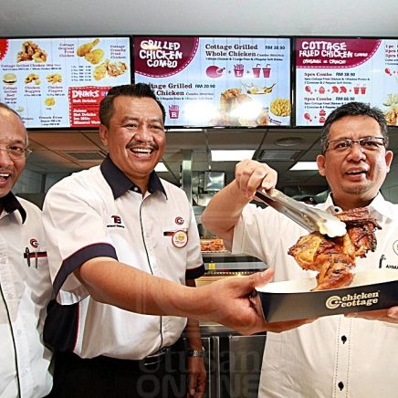 -Utusan Online 18 Disember 2015- Ahmad Razif Abd. Rahman (kanan) menunjukkan salah satu menu ayam panggang Chicken Cottage di Kuala Terengganu, semalam. Turut kelihatan, Wan Ismail Wan Yusoh (kiri) dan Ketua Pegawai Eksekutif Chicken Cottage Malaysia, Mohd Anuar Osman. KUALA TERENGGANU 17 Dis. – Kerajaan negeri yakin rangkaian restoran makanan segera antarabangsa, Chicken Cottage…