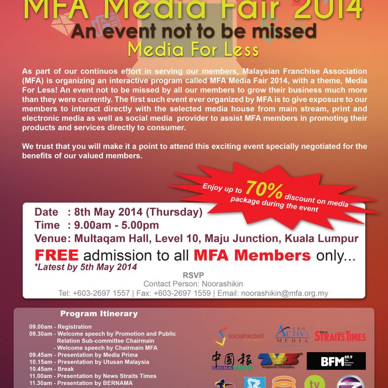 29 Mei 2014 – ABN News KUALA LUMPUR – Industri francais dijangka menyumbang sebanyak RM25.6 billion kepada pendapatan negara sejajar dengan peningkatan industri itu yang dilihat sebagai konsisten setiap tahun. Buktinya sehingga 28 Mei, sejumlah 726 syarikat francais yang terdiri daripada pelbagai sektor telah didaftarkan di negara ini. Menteri Perdagangan Dalam Negeri, Koperasi dan Kepenggunaan (KPDNKK), Datuk…