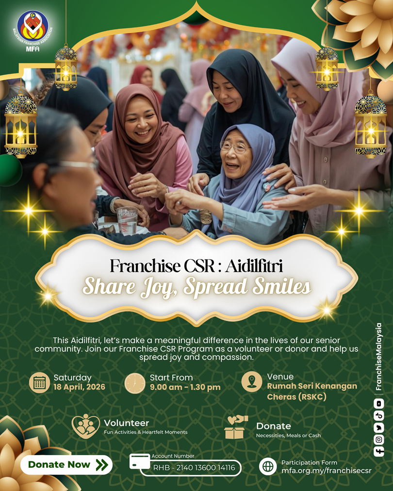 We warmly invite franchise brands, partners, and individuals to participate in this CSR initiative by contributing their support and joining us in making this Aidilfitri celebration more meaningful for the elderly community.