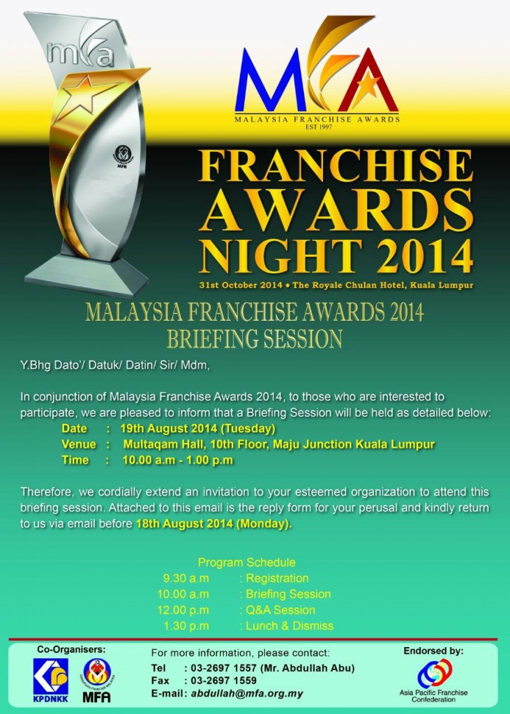 MALAYSIA FRANCHISE AWARDS 2014 BRIEFING SESSION