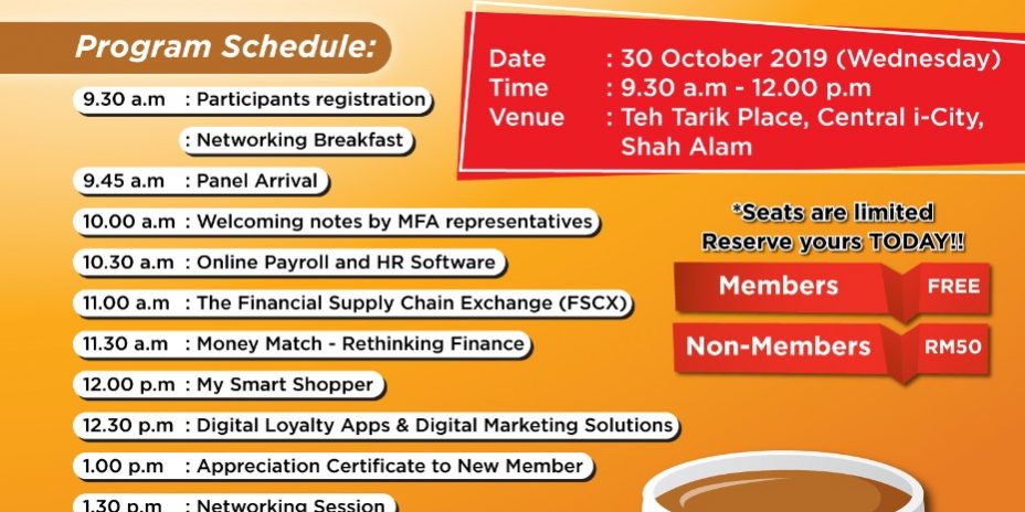 Refer to the above matter, we are pleased to inform you The Malaysian Franchise Association (MFA) will once again organize the “Teh Tarik” Session. The main objective of this program is to have a casual session to network and build relationship with our members. At the same time, we would like to highlight and update on current issues and get feedback in the franchise industry from the franchise player.