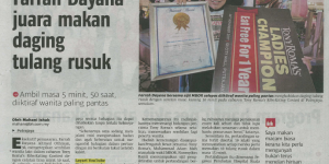 Penyertaan itu sekali gus melayakkan beliau diiktiraf dalam Malaysia Book of Records (MBOR) sebagai wanita paling pantas menghabiskan daging tulang rusuk dengan catatan masa bawah 10 minit.