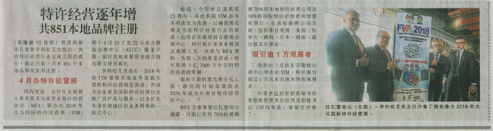 The Franchise International Malaysia 2018 (FIM 2018), jointly organized by the Ministry Of Domestic Trade, Cooperatives and Consumer Affairs and Malaysian Franchise Association (MFA), will be grandly opened at the Kuala Lumpur Convention Centre (KLCC) from April 20th to 22nd. Prime minister, Dato’ Sri Najib Tun Razak will attend the opening ceremony.