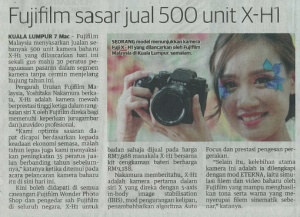 Artikel Penuh : http://www.utusan.com.my/bisnes/ekonomi/fujifilm-sasar-jual-500-unit-x-h1-1.622930