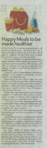 By the end of 2022, at least half of the Happy Meals offered in 120 markets around the world will clock in at no more than 600 calories, with 10% of calories coming from saturated fat, 650mg of sodium, and 10% of calories from added sugar.