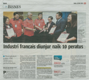 Artikel Penuh : https://www.bharian.com.my/bisnes/lain-lain/2018/05/428754/industri-francais-dijangka-berkembang-10-peratus