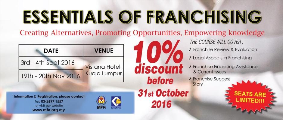 Our TeamsMFA is committed to continue advancement of franchising in Malaysia into the twenty-first century in line with Vision 2020LESS FAT… LESS SALT… LESS CALORIES… SPECIAL OFFER JUST FOR OUR BELOVED MFA MEMBERS