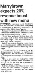 Putrajaya, 30 June 2022, Malaysian – based halal – certified fast – food chain Marrybrown is targeting a 20% increase in revenue through the introduction of its “Oishii Japan” menu. Marrybrown International director Kairul Azman said the new menu is to be launched today and run until August 7, 2022. “Every time we have a…