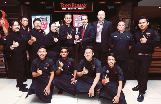 STRACENER (empat dari kanan) dan Muhammad Adam (lima dari kiri) bergambar dengan kakitangan Tony Roma’s.