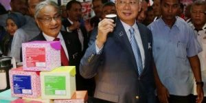 NAJIB singgah sebentar mencuba minuman kopi Gloria Jeans ketika melawat gerai pameran sempena Pameran Francais Antarabangsa Malaysia 2015 (FIM) di Pusat Dagangan Dunia Putra (PWTC), Kuala Lumpur. – Foto Aizuddin Saad